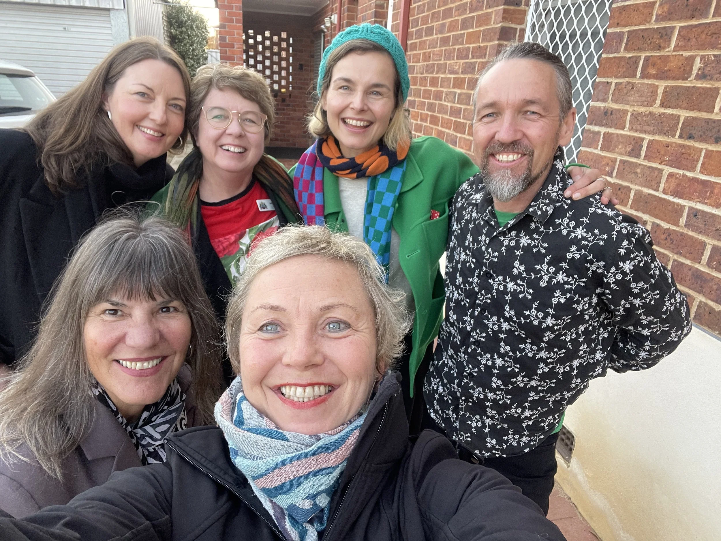 The Katanning Panel team: Top L to R: Meri Fatin, Lynn McLaren, Riley Salmon-Lomas and Peter Hill. Bottom Line to R: Mags Webster and Tineke Van der Eecken, Katanning, September 2024. Photo Tineke Van der Eecken